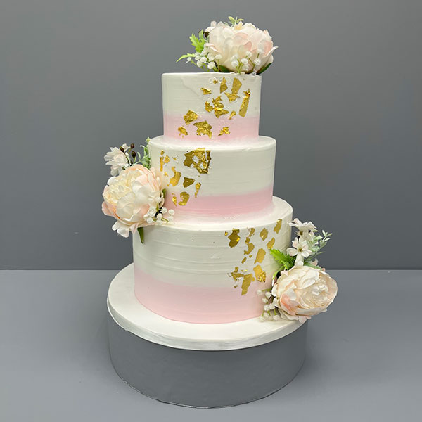 Buttercream Wedding Cake with Burgundy Flowers – Design 66